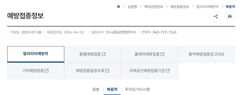 특히나 해외여행 계획중이시면 질병관리청에서 알려주는 말라리아 예방약을 빠르게 확인하세요.