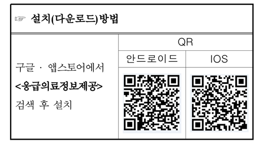 1) 구글이나 앱스토어에서 응급 의료정보 제공을 검색하신 후 바로 설치하시면 됩니다.